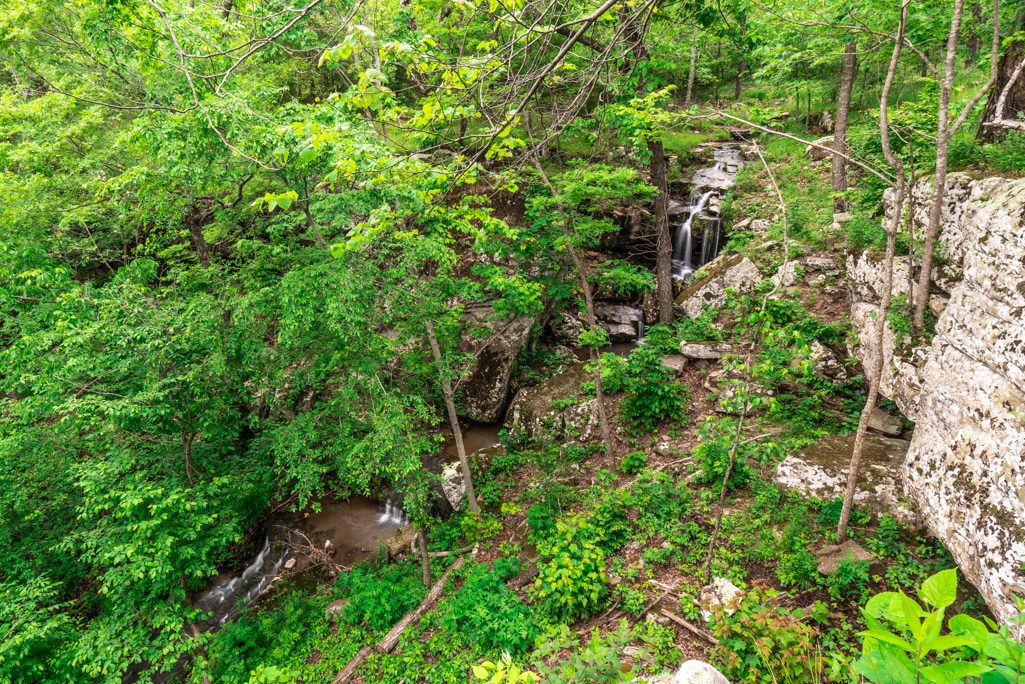 Waterfall: Please note that the waterfall flows with adequate rainfall, which can be any time of year here in the Ozarks. You are always welcome to walk the trail to the waterfall ledge area whether the water is running or not. Always be extra careful around ledge areas, especially if children are present.